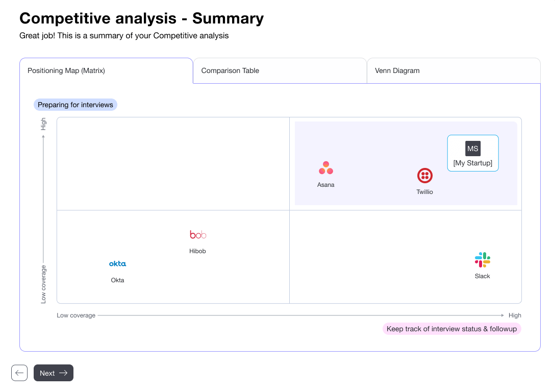 No, we’re not an accelerator. We’re a platform designed to help founders, including those in accelerators, build and validate their startups. We offer a structured framework with AI-powered insights to guide you through every step of your startup journey, from idea validation to strategy development.